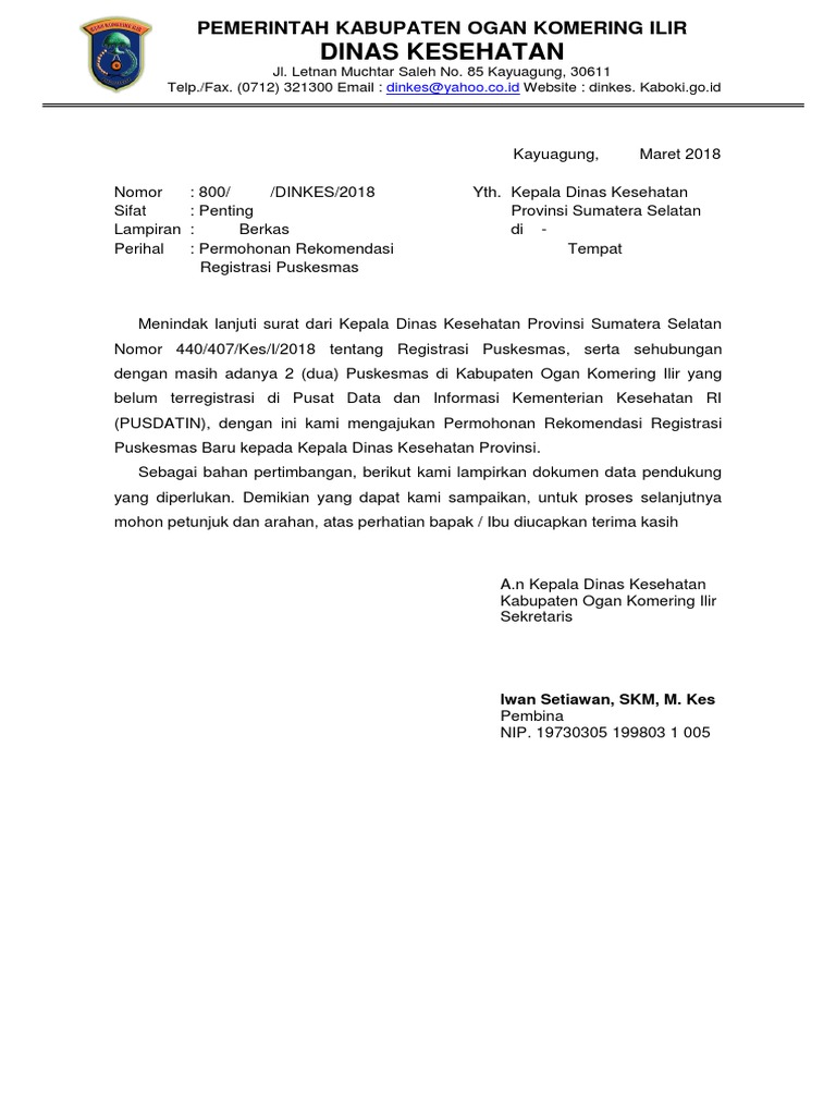 1 from Misalnya saja puskesmas yang ingin meminta bantuan tenaga kesehatan di puskesmas tersebut. Surat lamaran dinas kesehatan dki jakarta. Surat dinas kesehatan seputar pendidikan edukasipro com. Menindaklanjuti surat kementerian kesehatan no. Contoh surat dinas lengkap ada di sini. Please fill this form, we will try to respond as soon as possible. Surat dinas adalah selembar kertas yang berisi tentang pemberitahuan dan diterbitkan oleh suatu lembaga ataupun instansi'. Bentuk surat dinas surat dapat dibuat dengan berbagai macam bentuk tetapi dalam praktek ada beberapa macam surat dinas yag biasa dilakukan oleh sebuah kantor antara lain sebagai berikut 5) contoh penulsan surat pada halaman 2 (dua) drs.